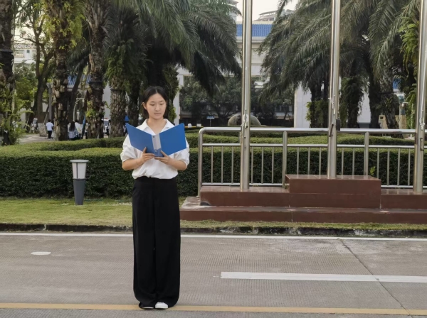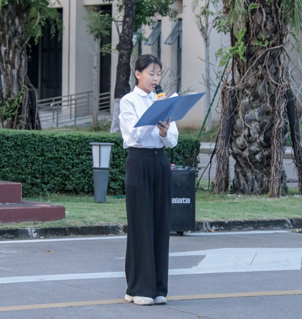 国际公司2025级旅游管理(中外合作办学)2班邓淑同学则从家国情怀、躬身践行、时代担当三个维度展开演讲。她强调,高尚之德既要传承“仁义礼智信”的传统文化精髓,也要落实在课堂诚信、校园文明、志愿服务等具体行动中,号召青年学子以青春之力勇担时代使命,让品德之光照亮追梦征程。