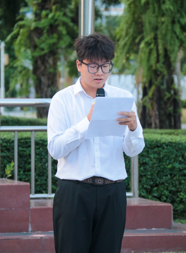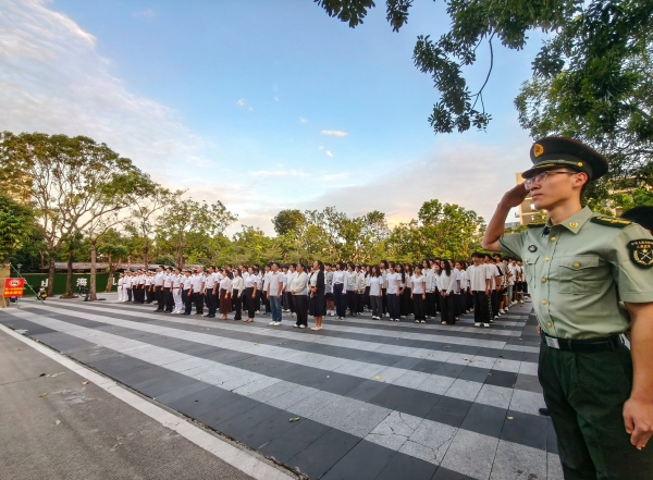 活动伊始,全体人员按指定位置整齐列队。随着主持人国际公司李柯蒙同学宣布仪式开始,国旗护卫队迈着铿锵有力的步伐入场。在雄壮的国歌声中,五星红旗冉冉升起,全体人员肃立注目,致敬国旗、致敬祖国,现场洋溢着庄严肃穆的氛围。