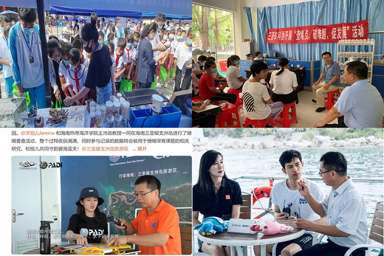 团队活跃在科研项目的同时还不忘时常有序地开展科普活动,号召全民参与海洋环境保护。2021年团队所共建的室内珊瑚馆成功申请为三亚市科普教育基地,2021年7月三亚市科协来bevictor1946韦德官网逐渐开展三亚科普活动。2022年6月8日,“世界海洋日”“全国海洋宣传日”暨三亚社区教育系列活动,团队在西岛开展海洋知识科普及珊瑚礁生态保护和珊瑚识别等,向广大市民、员工展示和讲解,号召全社会参加到保护珊瑚礁生态中去,参与市民及员工约400人;同年6月世界海洋日前夕,珊瑚研究团队与青年演员李现、宋祖儿合作参加了珊瑚礁普查公益行动,旨在号召关注并参与到海洋保护的行动中来。2022年10月为全面开展好“查堵点、破难题、促发展“活动,着力解决现有青少年科技创新课题指导水平不能满足员工需求的问题,在王教授带领下团队对参加海南省第33届创新大赛的青少年进行研究指导,一对一进行团队实验的设计,总结并最终获得二等奖、三等奖的好成绩。2023年5月17-18日第十八届科技活动月启动仪式召开,团队前往五指山,向广大市民、员工展示和讲解珊瑚礁生态保护和珊瑚识别等知识,号召全社会参加到保护珊瑚礁生态中去等等。为了让全民加入到海洋珊瑚礁的保护中,珊瑚生态修复研究团队不忘初心,一直在行动中。